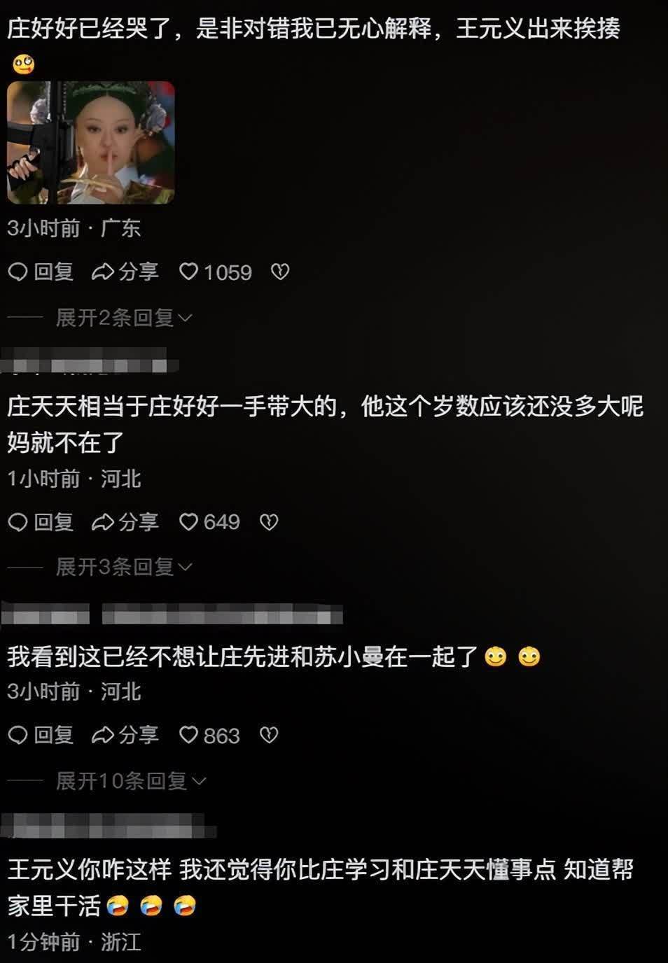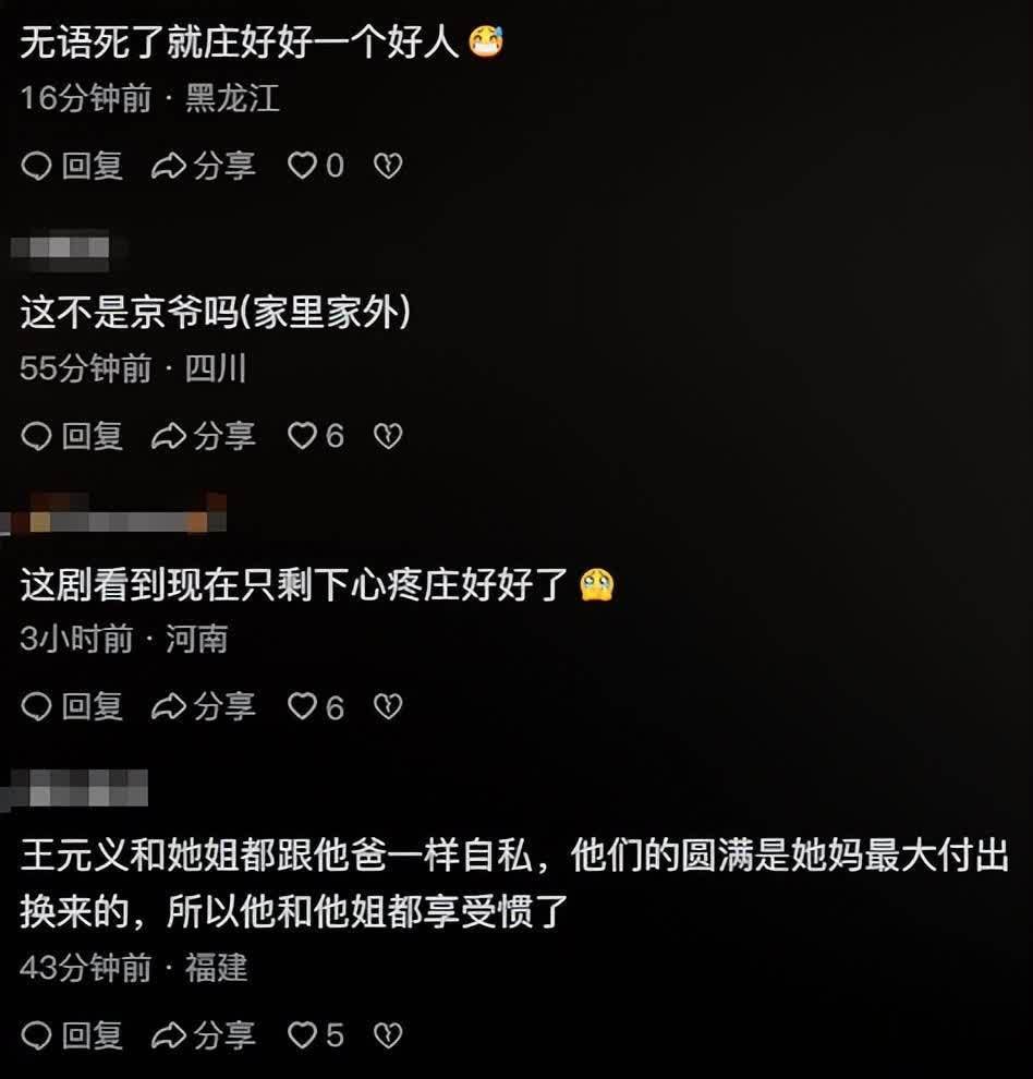 观众们也是感伤:“王家孩子都蔫儿坏,,,,,,庄家孩子都是直性子火爆性情。。。。。。。”