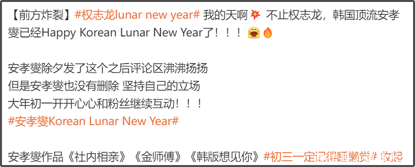 Ö»¹ÜÔÆÔÆ£¬£¬£¬£¬£¬ÈÔÈ»Óк«ÐÇÔÚ°µ´Á´Á¸ãÊ£¬£¬£¬£¬£¬Õâ±ßȨ־Áú¸ÒÔÚ¹ú¼ÊÒôÀÖ½ÚÇ¿µ÷¡°lunar new year¡±£¬£¬£¬£¬£¬ÁíÒ»±ßº«¹ú¶¥Á÷ÄÐÐǰ²Ð¢ÛƾÍ×îÏÈ¡°happy Korean lunar new year¡±£¬£¬£¬£¬£¬Ò»ÏÂ×Ó͵ÁË´º½ÚºÍÖйúÏÄÀú£¬£¬£¬£¬£¬Á½¸ö¹Å°åÎÄ»¯£¬£¬£¬£¬£¬ÒýÆð̸ÂÛÇøÕùÒé¡£¡£¡£¡£¡£¡£
