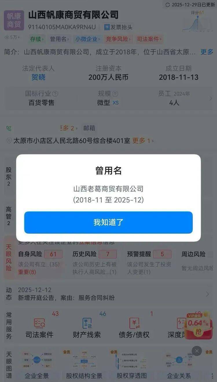 ɽÎ÷ÀϸðÉÌóÓÐÏÞ¹«Ë¾¸Õ¸üÃûΪɽÎ÷·«¿µÉÌóÓÐÏÞ¹«Ë¾£¨Í¼Ô´£ºÌìÑ۲飩