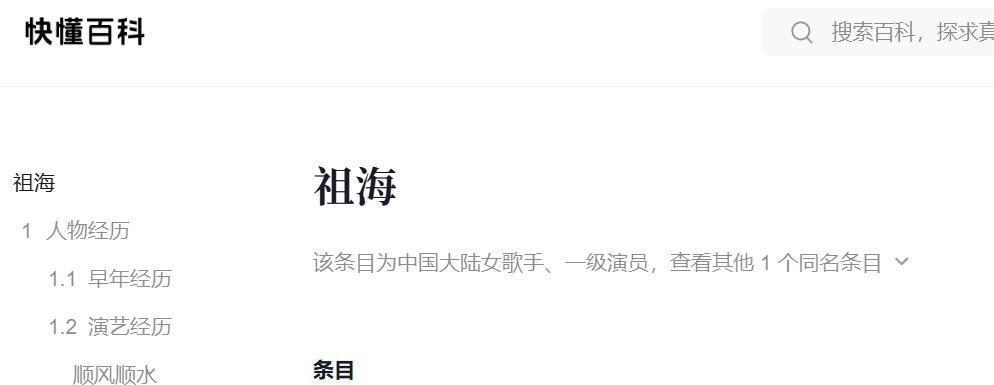 《祖海(中国大陆女歌手、一级演员)》(抖音百科)