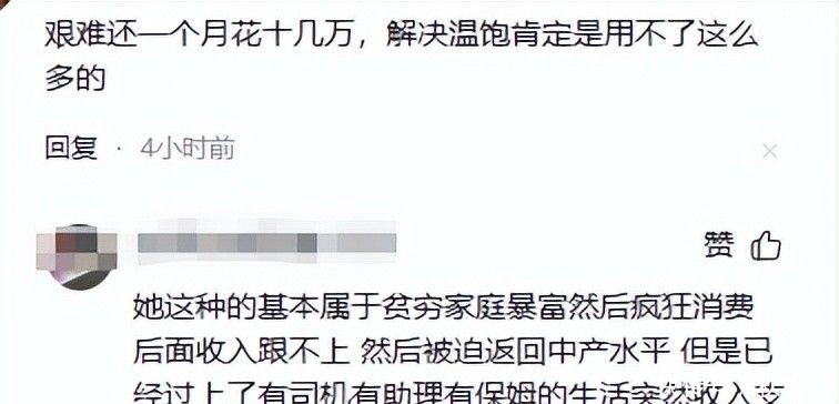 不少网友直言:“通俗人辛勤一年未必能挣到十万,,,,,,,,她单月支出就破六位数,,,,,,,,还谈什么困窘??????早该理性妄想家庭规模 。 。。。。 。”