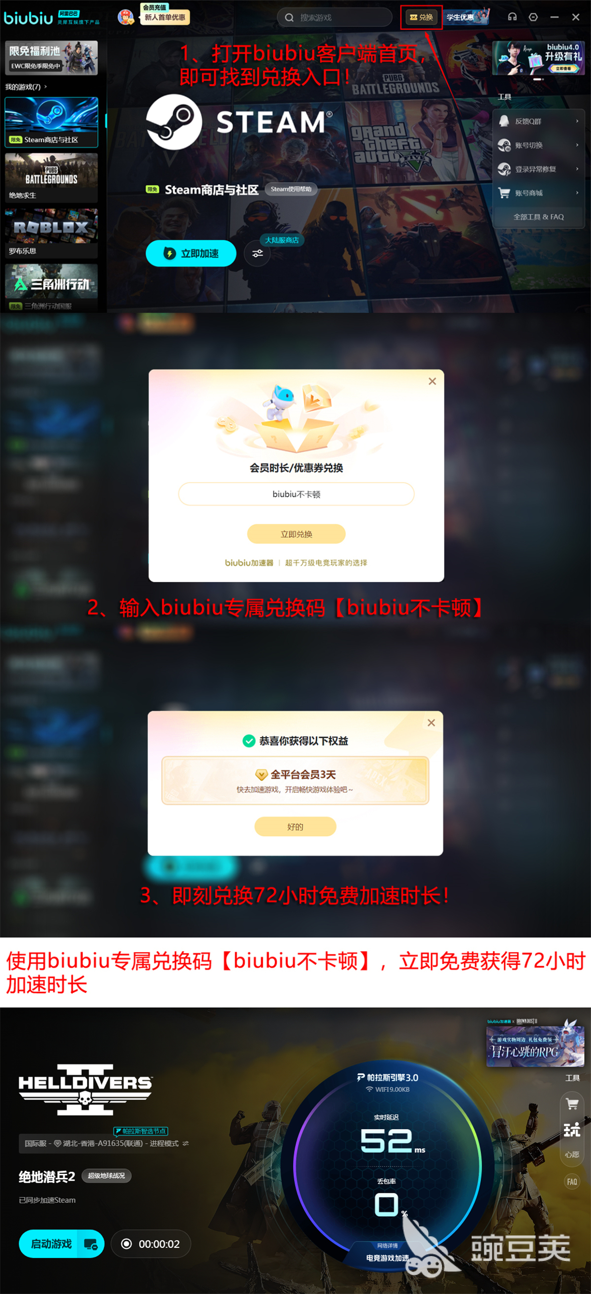 针对新用户,,,,,,,,biubiu提供双重体验包管:注册后连忙获赠24小时全游戏免费加速时长;;;;;;首次登录还可输入兑换码【biubiu不卡顿】特殊领取72小时加速权益。。。。。两项叠加,,,,,,,,新账号总计享有96小时无门槛试用期,,,,,,,,充分验证加速效果。。。。。若体验知足,,,,,,,,可升级为会员效劳,,,,,,,,年费折算日均本钱缺乏1元,,,,,,,,性价比突出。。。。。