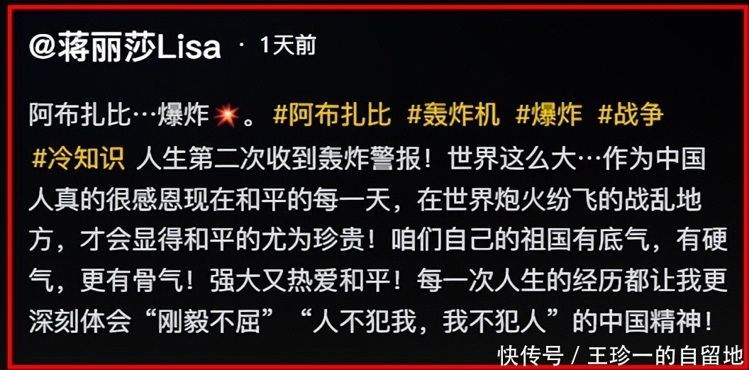 3月1日,,,,,蒋丽莎在社交账号上晒出了收到的轰炸警报,,,,,直言这是人生第二次收到轰炸警报 。。。。。。