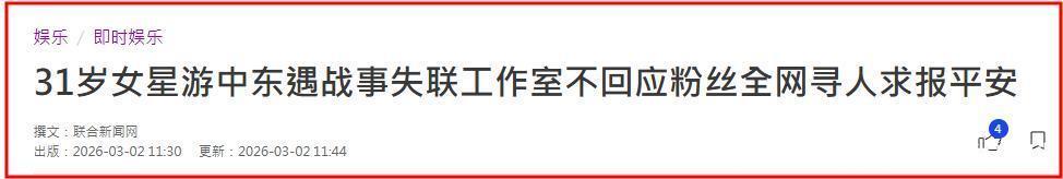 值得一提的是,,,,,尚有一位着名女星被曝在中东失联 。。。。。。