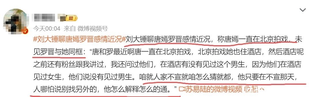 克日,,,,,,,某着名娱乐拍客宣布一段探访视频,,,,,,,再度影射唐嫣与罗晋关系异常。。。。。