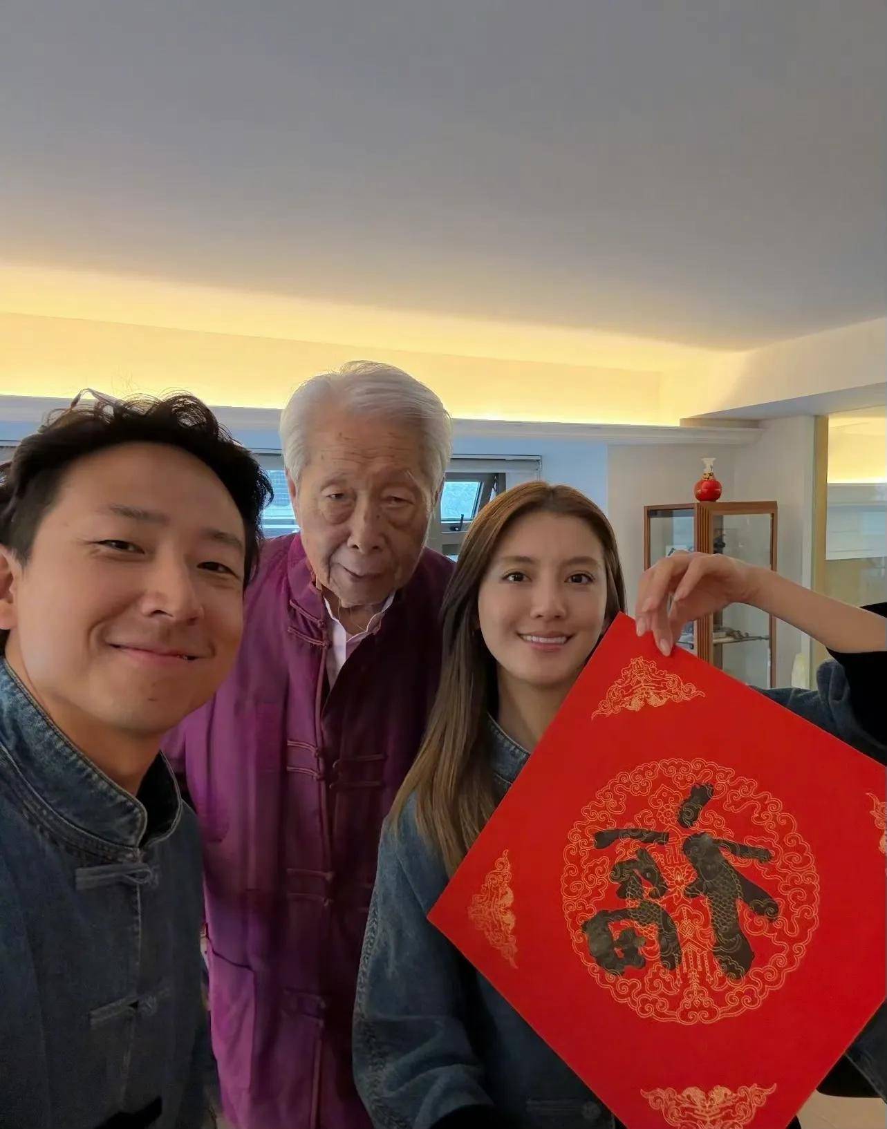 吴千语还晒出了施伯雄爷爷写的“福”字,,,,,她神情甜蜜,,,,,姿态谦逊,,,,,时势温馨融洽。。。。。。施伯雄的爷爷身着紫色新中式上衣,,,,,站在吴千语和施伯雄中心,,,,,气色颇佳。。。。。。