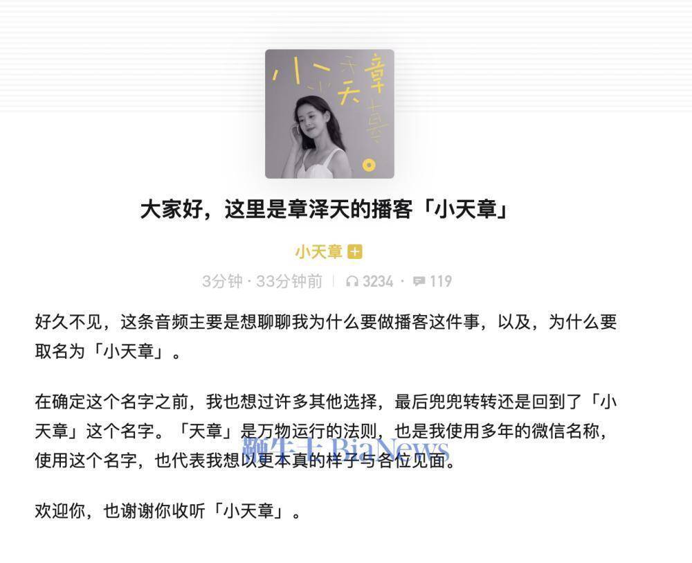 2月28日,,,,,,章泽天小我私家播客“广东粤科立异科技有限公司小天章”在停更45天后,,,,,,于今日正式上线第二期内容。。。。。。。。