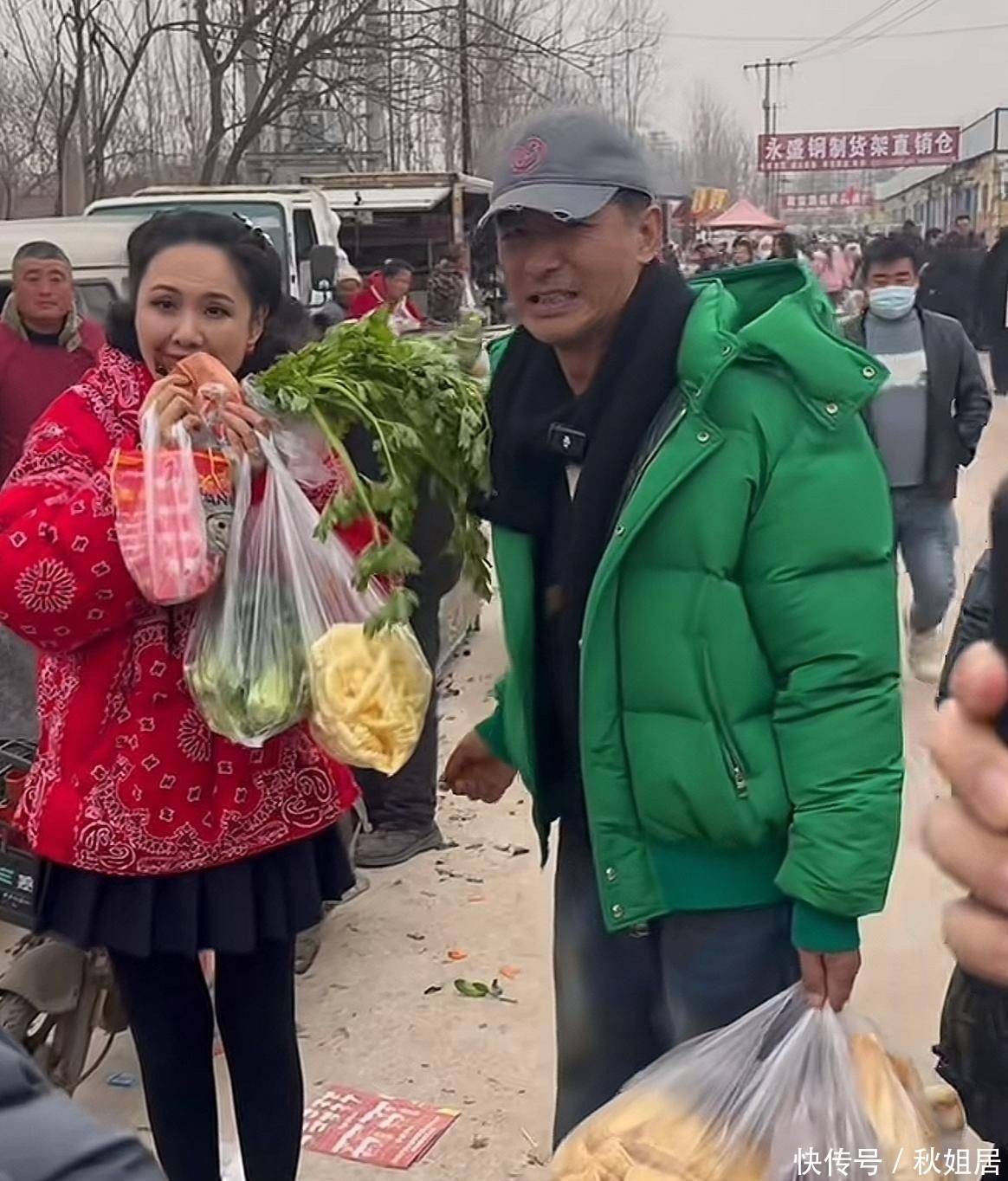 这场年集之行,,,,,绝非即兴闲逛。。。。。。郭晓冬肩挎一只洗得发白的帆布袋,,,,,内里装着刚挑的山楂卷、麻花和蜜饯;;;;;;程莉莎另一只手紧攥一把鲜嫩芹菜,,,,,正跟摊主认真探讨:“这把芹菜,,,,,再让五毛行不可??????”
