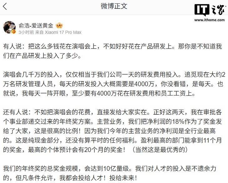 ËûдµÀ£º¡°ÉÐÓÐÈË˵²»Èç°ÑÑݳª»áµÄÆÆ·Ñ£¬£¬£¬£¬£¬£¬£¬£¬Ö±½Ó·¢¸ø¸÷ÈË×Åʵ¡£¡£¡£¡£¡£ÕýºÃÕâÁ½Ì죬£¬£¬£¬£¬£¬£¬£¬ÎÒÔÚÉóÅú¸÷¸öÊÂÒµ²¿µÝ½»¹ýÀ´µÄÄêÖÕ½±¼Æ»®¡£¡£¡£¡£¡£Ö÷ÓªÓªÒµ£¬£¬£¬£¬£¬£¬£¬£¬ÎÒÃǰѾ»ÀûÈóµÄ 18% ×÷ΪÁ˽±½ð·¢¸øÁ˸÷ÈË£¬£¬£¬£¬£¬£¬£¬£¬ÕâÊǺܸߵıÈÀý£¡ÓÉÓÚÎÒÃǽñÄêµÄÖ÷ÓªÓªÒµµÄ¾»ÀûÈóÊÇÈ«ÐÐÒµ×î¸ßµÄ¡£¡£¡£¡£¡£ÕâÊÇ´¿Ïֽ𲿷֣¬£¬£¬£¬£¬£¬£¬£¬»¹Ã»ÓÐËãÆ½Ê±µÄÈκθ£Àû¡£¡£¡£¡£¡£Ó¯Àû×î¸ßµÄ²¿·ÖÄÜÄõ½ 11 ¸öÔµĽ±½ð£¬£¬£¬£¬£¬£¬£¬£¬×î¸ßµÄ¸öÌåÔ¤¼Æ»áÓÐ 20 ¸öÔµĽ±½ð£¡£¡£¡£¡£¡£¨ËäÈ»ÕâÊÇ×îÓÅÒìµÄ£©¡±